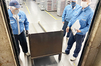 ②パワーゲートを使用してのカゴ台車積み/降ろしなので体に負担も少ない業務です!