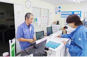 業務終了後に工場内の食堂で、